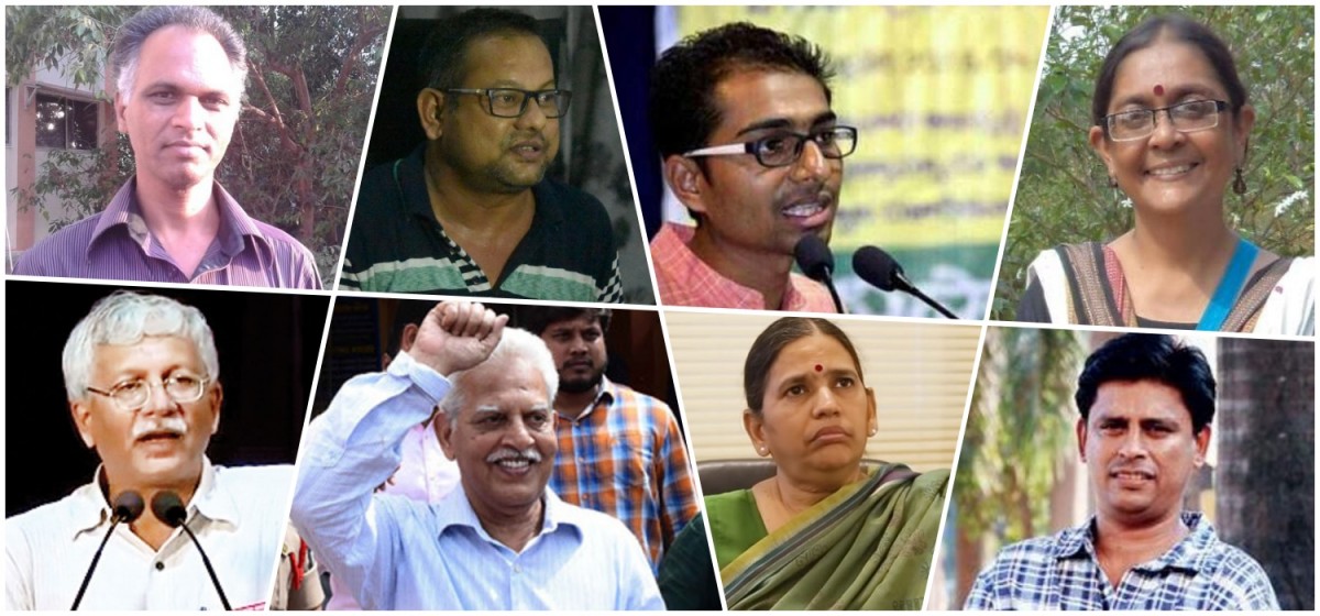 Clockwise from top left: Sudhir Dhawale, Surendra Gadling, Mahesh Raut, Shoma Sen, Arun Ferreira, Sudha Bharadwaj, Varavara Rao and Vernon Gonsalves.