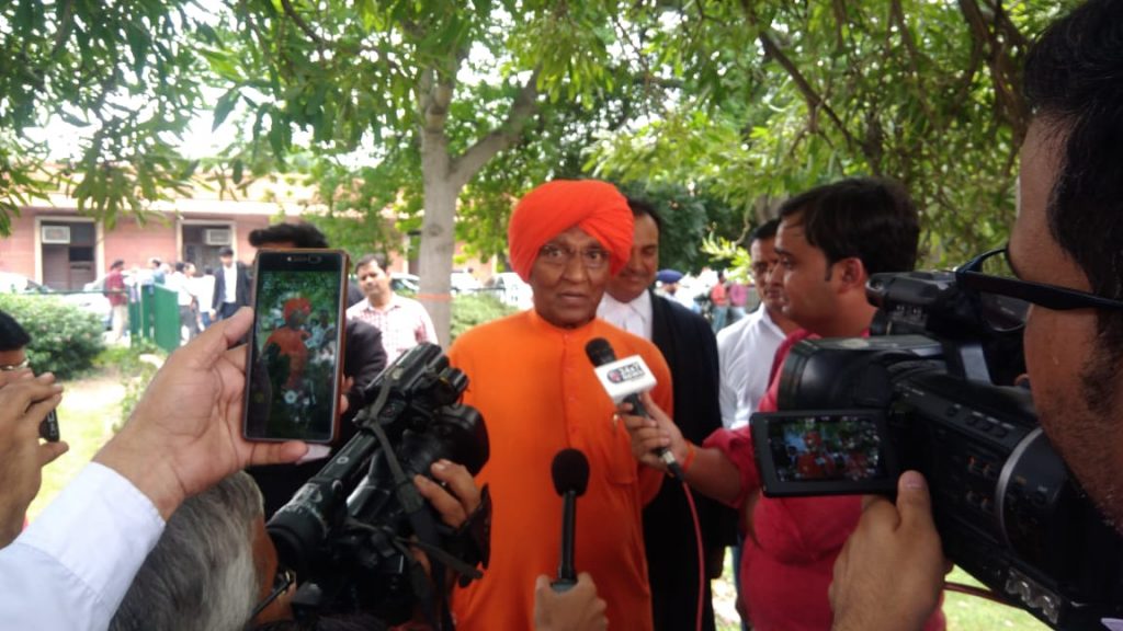 Swami Agnivesh speaking to reporters outside the Supreme Court after decriminalisation of Section 377. Photo: Anoo Bhyuan/The Wire