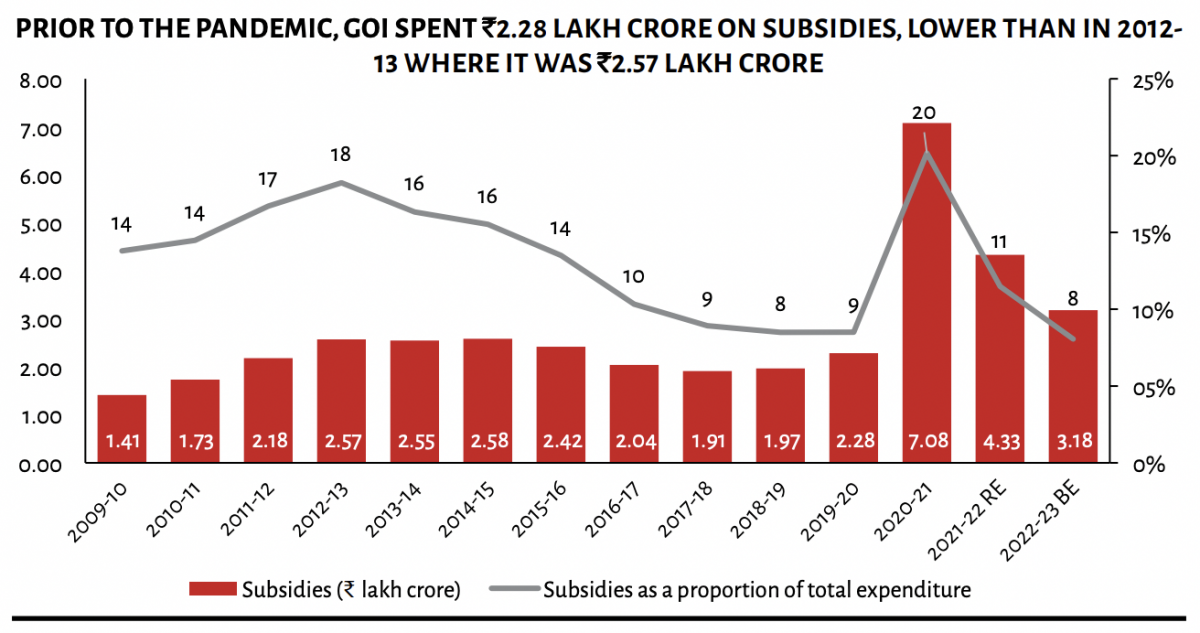 An important area where GoI spends money is on subsidies such as fertilisers, petrol, and food, among others. A detailed look on subsidies is revealing.