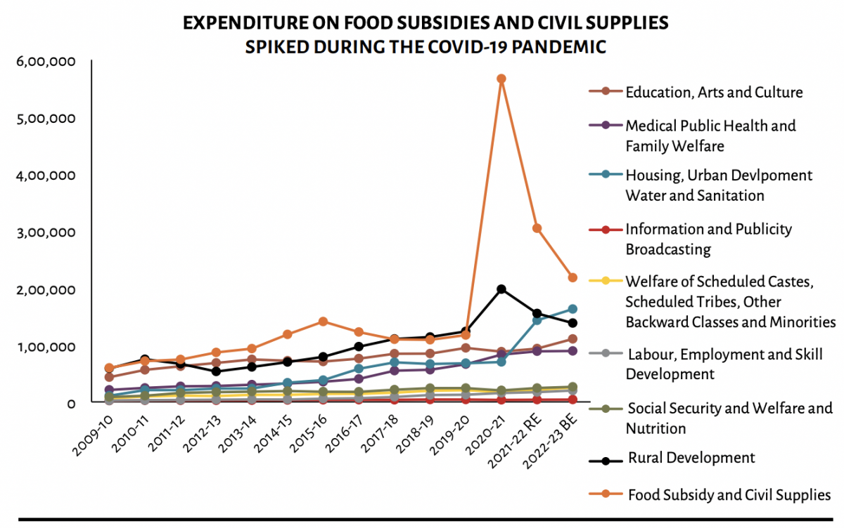 For the purpose of this Special Brief, we are covering the period from 2009-2023. Actual Government of India (GoI) expenditures have been used till Financial Year (FY) 2020-21. For FY 2021-22, figures are Revised Estimates (REs) and Budget Estimates (BEs) for FY 2022-23.