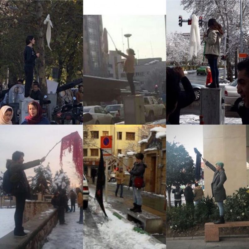 Photos of their demonstrations have been widely circulated online under the hashtag #دختران_خیابان_انقلاب (translated to #Girls_of_Enghelab_Street). As of the afternoon of January 29, at least two women (of the six women appearing in the photos) have been arrested.
