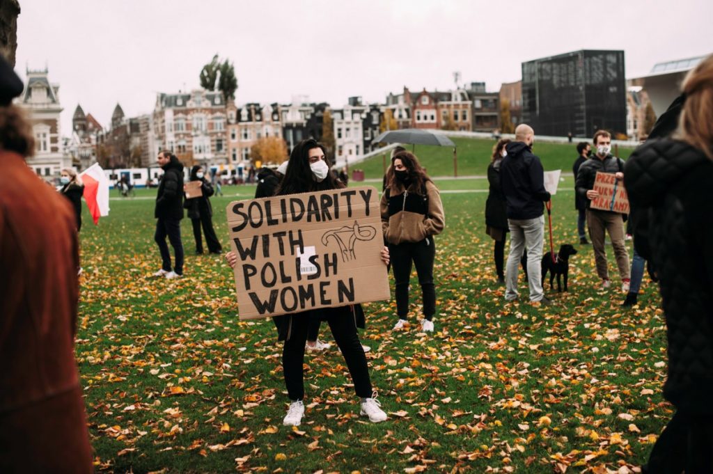 People take part in a protest against the ruling by Poland's Constitutional Tribunal that imposes a near-total ban on abortion, in Amsterdam, Netherlands, October 25, 2020, in this picture obtained from social media. Picture taken October 25, 2020. Photo: Reuters Facebook/Barbara Germes