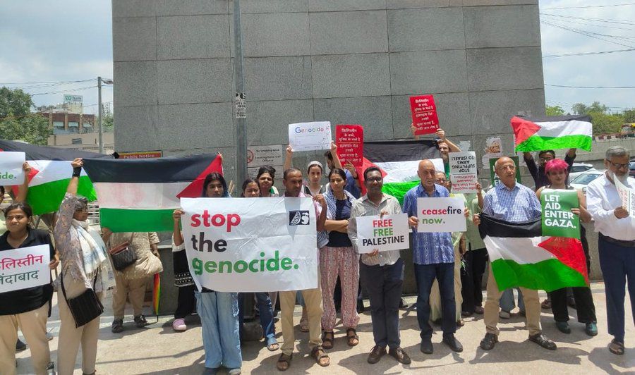 The pro-Palestine protest at Nehru Place in Delhi today, July 19, 2025. Photo: By arrangement.