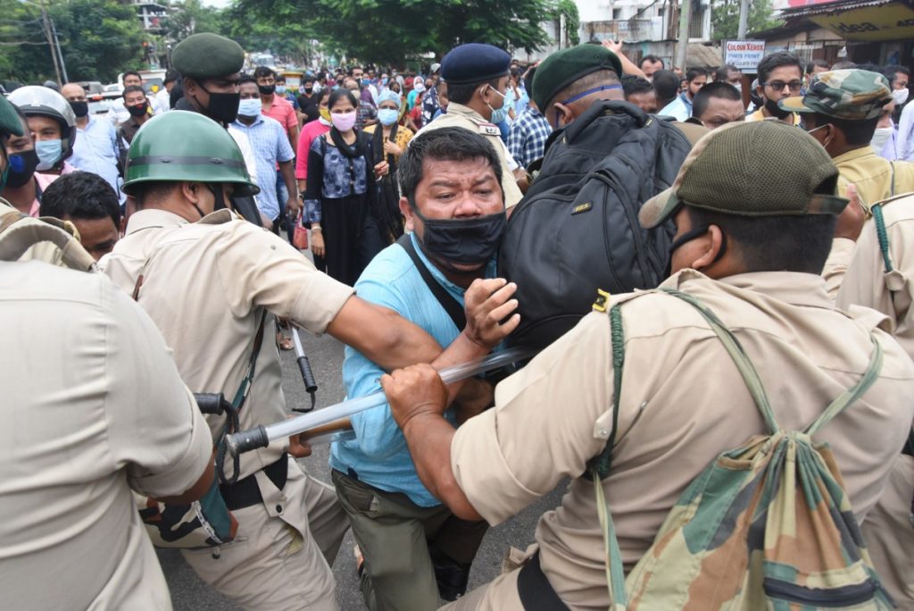 After a series of protests in Tripura’s capital, Agartala, including mass demonstrations in front of the civil secretariat, at least ten of the teachers were injured on September 23, when the police lathi-charged them, fired tear gas shells and deployed water cannons on them during a protest march.