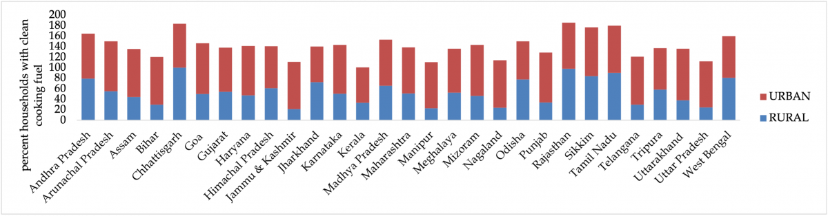 Figure 10: Percent Households with Clean Energy (Cooking Fuel) Across States in India. Source: Access (In)Equality Report 2021
