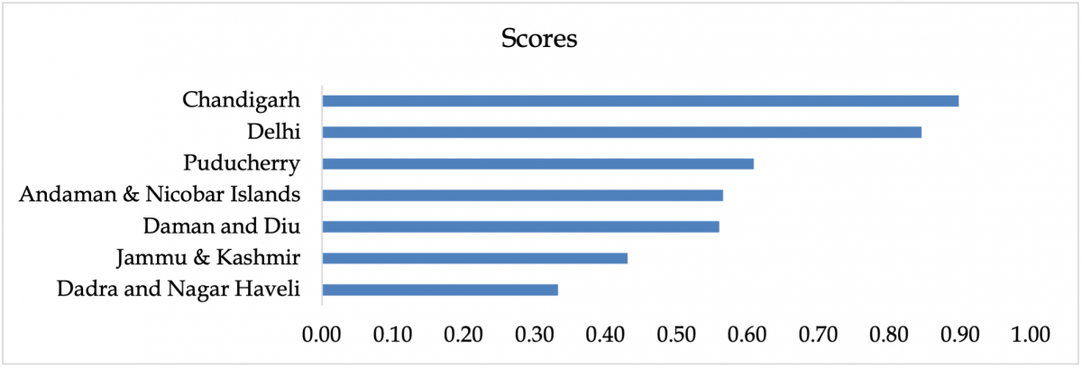 Figure 2: Access to Basic Amenities: Ranking for Union Territories (UTs). Source: Access (In)Equality Report 2021