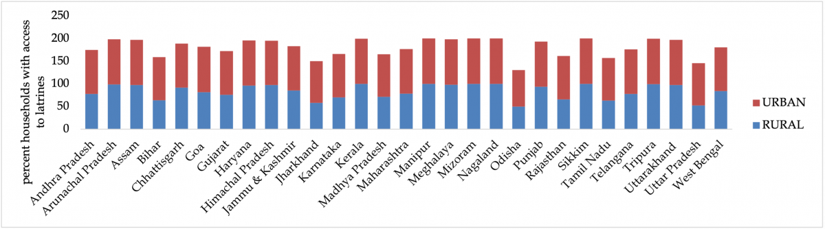 Figure 6: Percent of Households with Access to Latrines Across States in India. Source: Access (In)Equality Report 2021