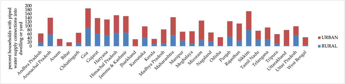 Figure 4: Percent of Households with Piped Water Supply Connections into Dwelling or Yard Across States in India. Source: Access (In)Equality Report 2021