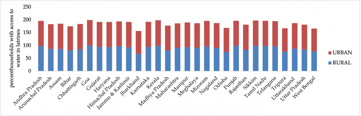 Figure 7: Percent of Households with Access to Water in Latrines Across States in India. Source: Access (In)Equality Report 2021