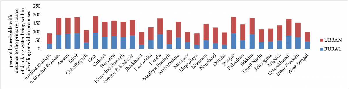 Figure 5: Percent of Households with Distance to Primary Source of Drinking Water being within Dwelling Or within Premises Across States in India. Source: Access (In)Equality Report 2021