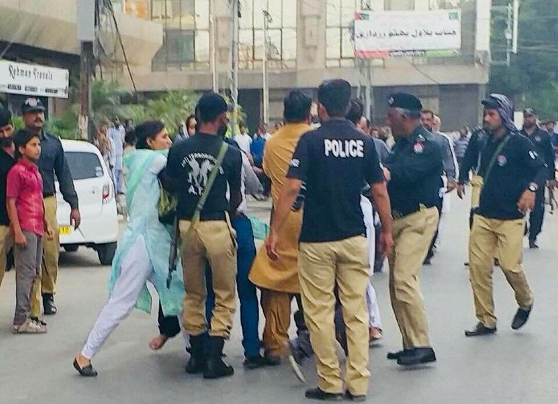 State police resorted to violence against a non-violent protest at the Karachi Press Club in order to remove a camp set up by the women. Local police were seen beating up protestors and behaving cruelly towards women. A young woman’s shirt was torn.