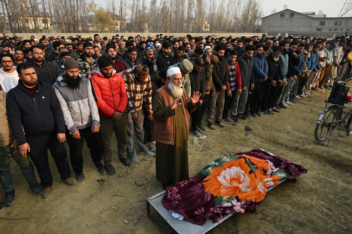 At the family’s home in Nowgam, barely 100 metres from the police station, a group of wailing women tried to comfort his wife Bano, who was pacing up and down the veranda, slapping her body here and there to grieve the tragic loss.