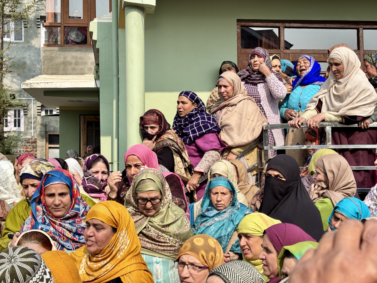 Women gather outside Parray's Nowgam home on November 15, 2025. Photo: The Wire.