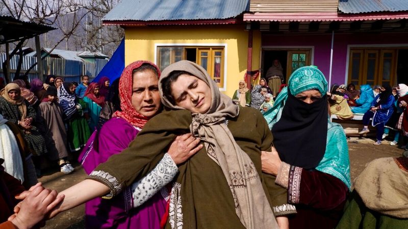 Later on Thursday afternoon, Mir’s body was handed to the family after which he was laid to rest amid emotional scenes at the common graveyard of Goripora village.