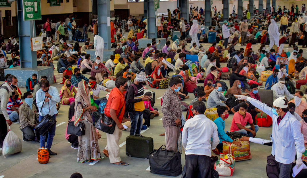 Migrants arrive from Surat by a special train at Praygraj railway station, during the ongoing COVID-19 lockdown, in Prayagraj, Wednesday, May 06, 2020. Photo: PTI