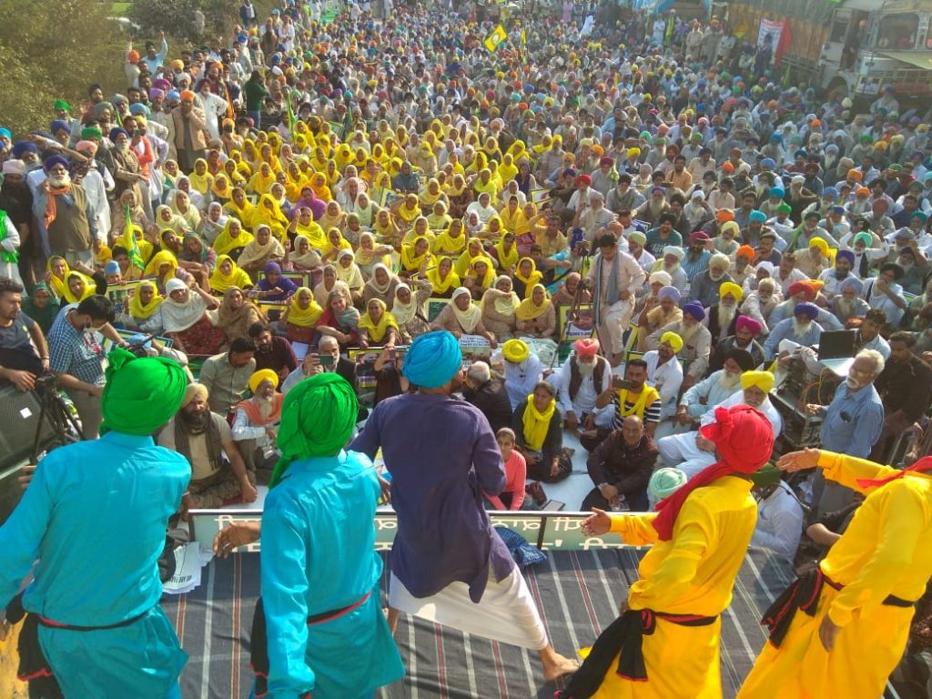 A play being performed at the protest at Tikri on December 10. Photo: Ajoy Ashirwad Mahaprashasta