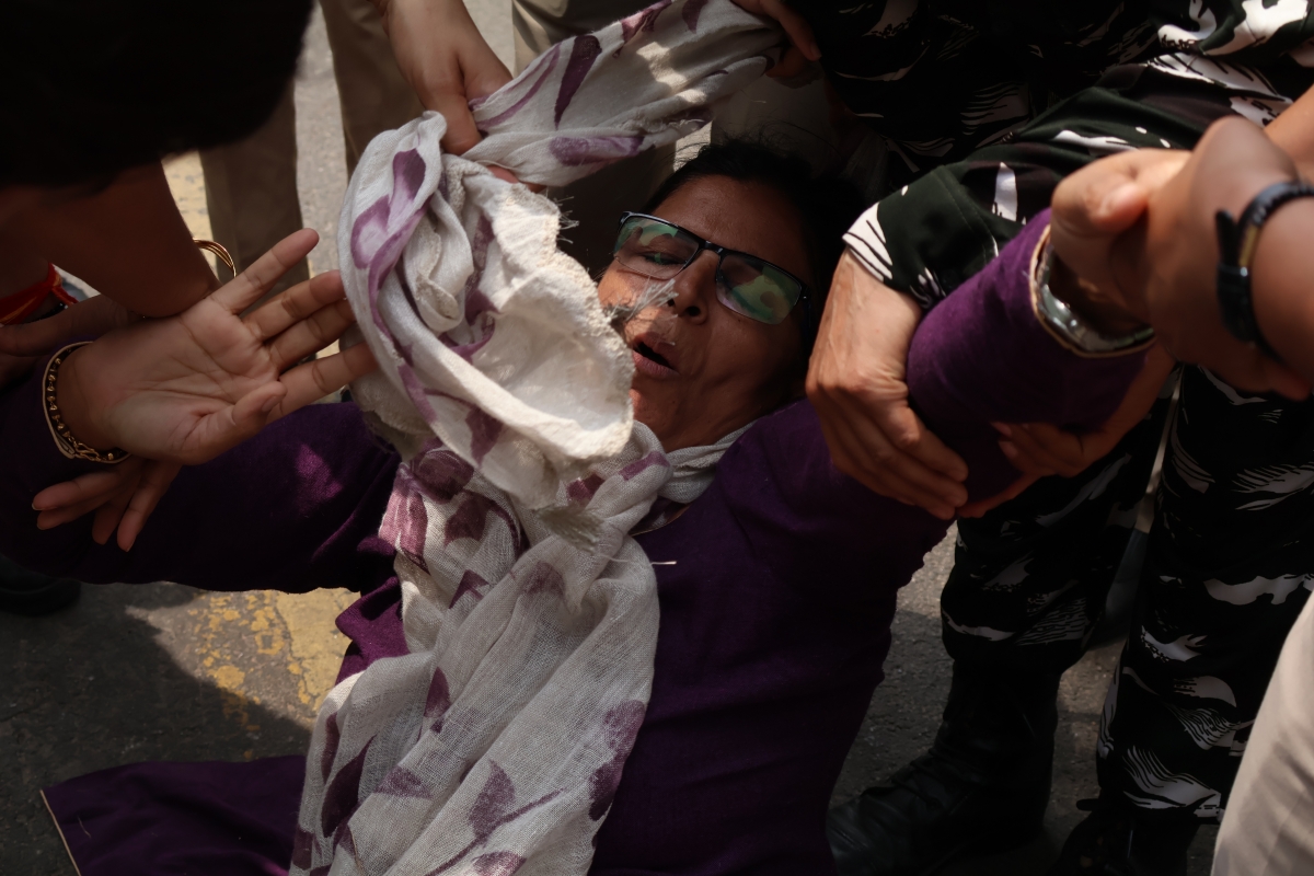 The betis weren’t saved. They were lifted up by their arms and legs and carried away screaming into police buses. (A photojournalist present at the spot did note, though, that it took approximately 20 policewomen to finally overpower Sakshi Malik, who is an Olympic wrestler after all.) Horrifically, Malik’s mother was also carried off into a police bus in a similar manner.