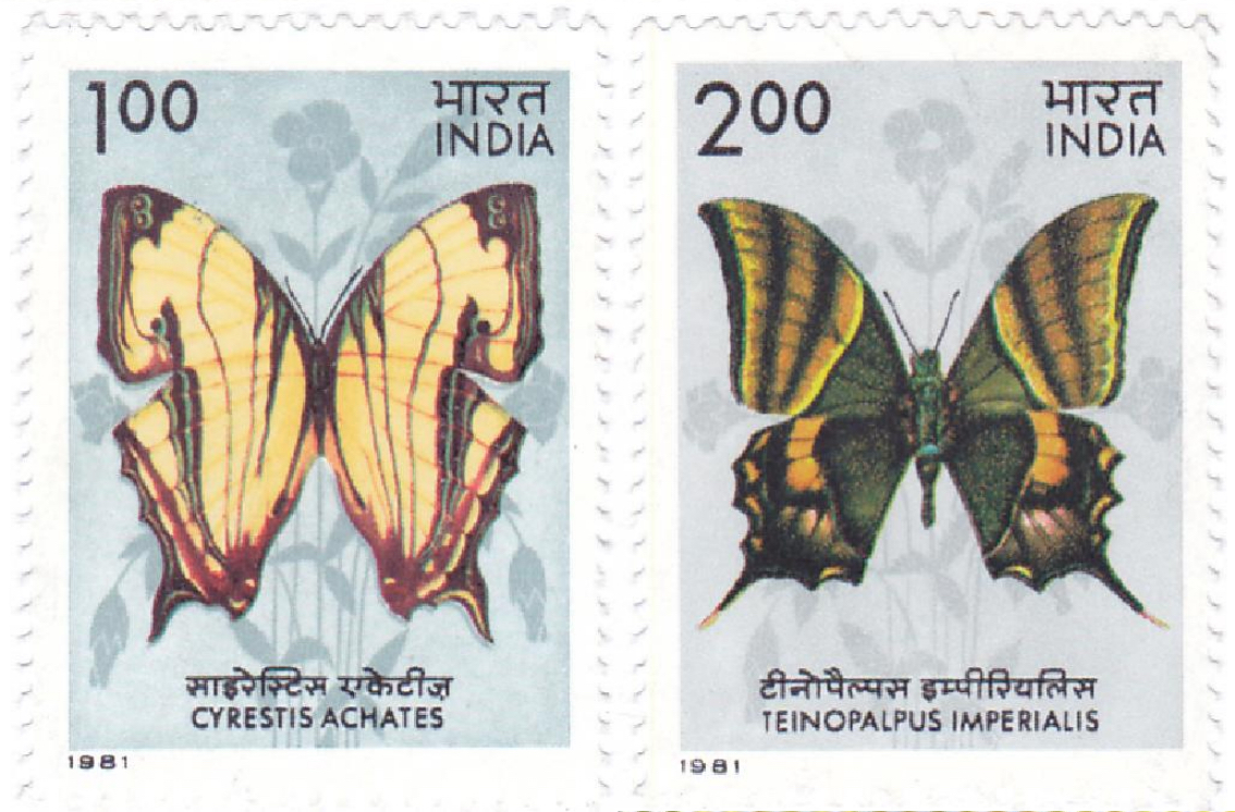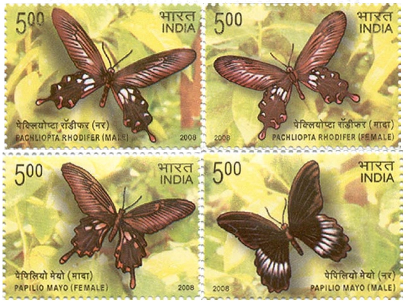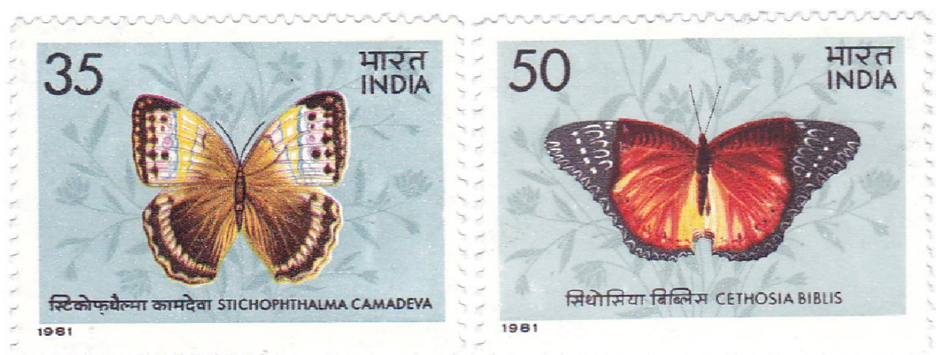 The most notable ones are the four commemorative postage stamps on butterflies released in 1981 and another four commemorative postage stamps on endemic butterflies of the Andaman and Nicobar Islands released in 2008, which were taxonomically identified with species names (illustrated below).
