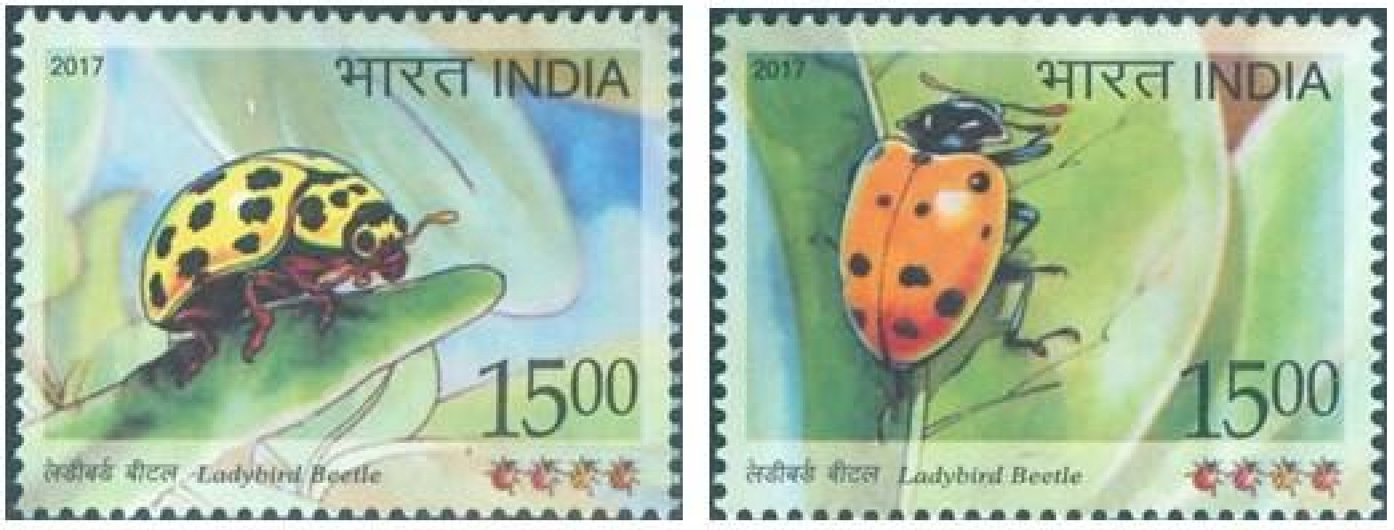 Most of them have been in the form of stylised and unidentified insects in “greetings” stamps, “care for the girl child” stamps, stamps on “national parks”, nature, “Swachh Bharat”, “renewable energy”, “Fairs of India”, stamps to commemorate special events like the International Conference on Apiculture, the Asian Track and Field meet, the Golden Jubilee of National Savings Organisation, IBBY Congress, Rurapex, Kerapex, Nepex, Karnapex, Naturepex, Samskriti Diwas, etc. Any avid collector of stamps on insects would have been mighty pleased to see the set of four stamps (illustrated) on ladybird beetles released by India Post on February 23, 2017. It is indeed very commendable that India Post took up ‘insects’ as a subject for the stamp release.