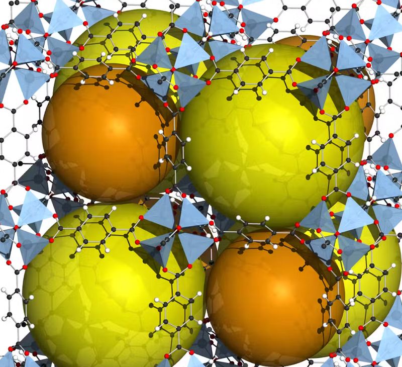These frameworks are so porous, like sponges with tiny voids, that it’s almost impossible to picture them. One gram of a MOF has so many pores that it can expose as much internal surface area as a soccer field. It’s astonishing that a handful of powder could hide an entire landscape of surface within it.