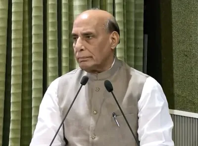 The defence minister said that under Prime Minister Narendra Modi, the armed forces by launching Operation Sindoor had “given a stern response to those camps that provide training to terrorists.”
