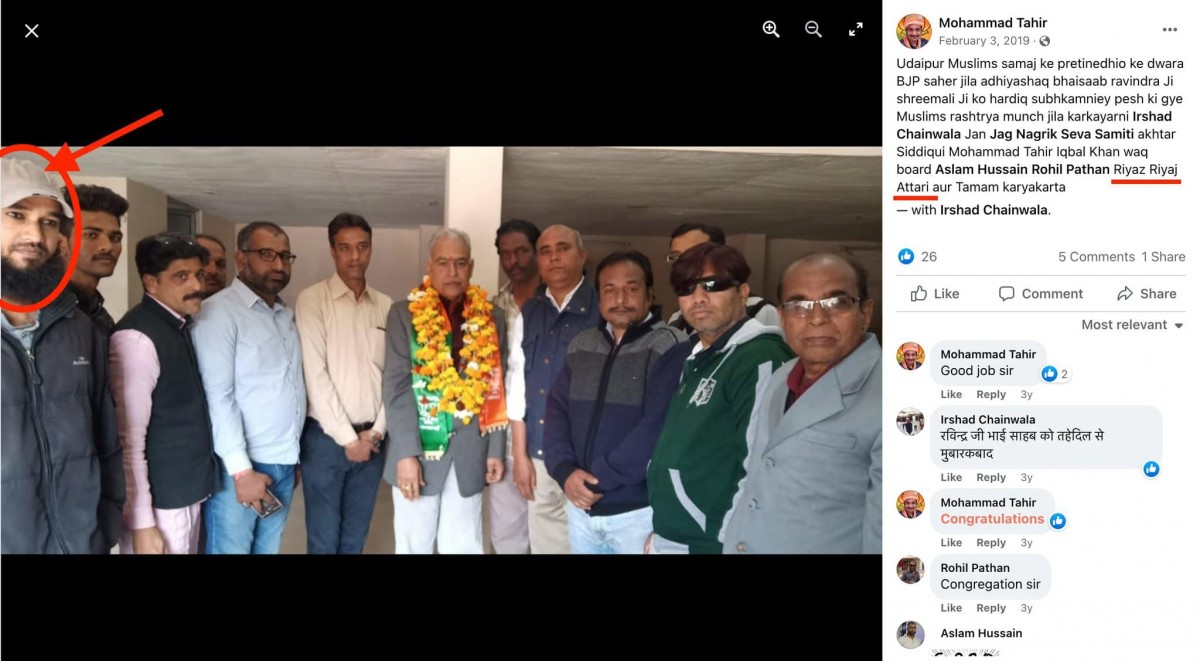 Curiously, the BJP leader was not confronted with the claim – made in a Faceboook post by fellow member of Udaipur BJP minority cell Mohammad Tahir on November 28, 2019 – that Attari was a "karyakarta", or activist, of the BJP.