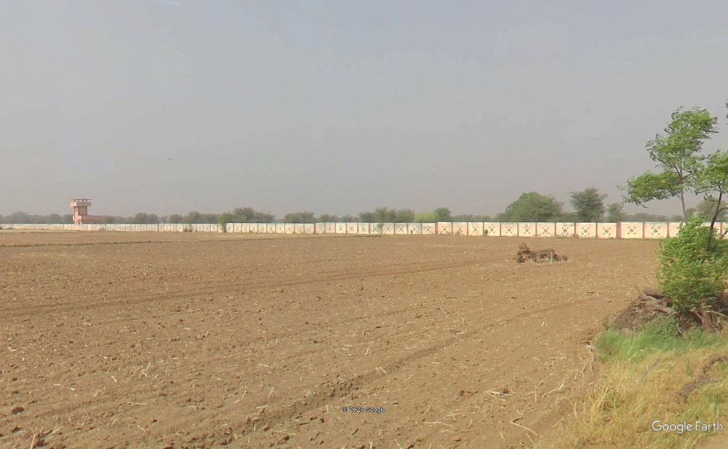 The boundary wall of the proposed Indian Defence University near Gurugram. Photo: Screenshot from Google Street View.