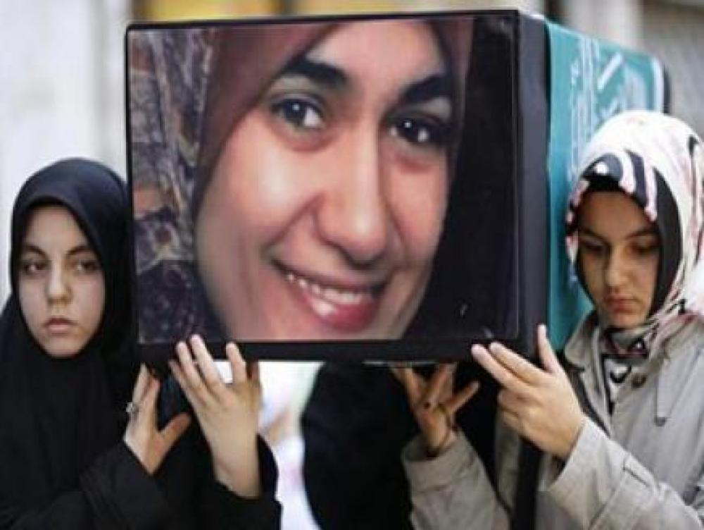 Turkish women carry a mock coffin with a picture of murdered Egyptian woman Marwa El-Sherbiny during a protest near the German consulate in Istanbul July 17, 2009. Credit: Reuters/Murad Sezer