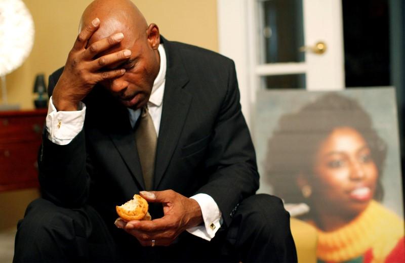 Arthur Hurd, husband of Emanuel Church shooting victim Cynthia Hurd, sits beside a portrait of his wife at his home in Charleston, South Carolina, U.S. June 15, 2016. Credit: Reuters/Randall Hill