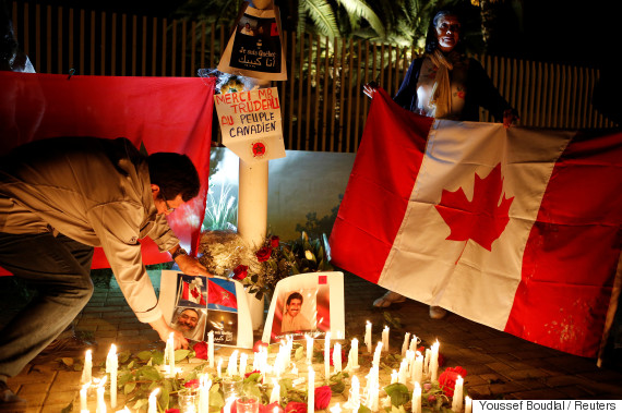 A man attends a tribute to victims killed at a Quebec City mosque, in front of the Embassy of Canada in Rabat February 6, 2017. Credit: Reuters/Youssef Boudlal