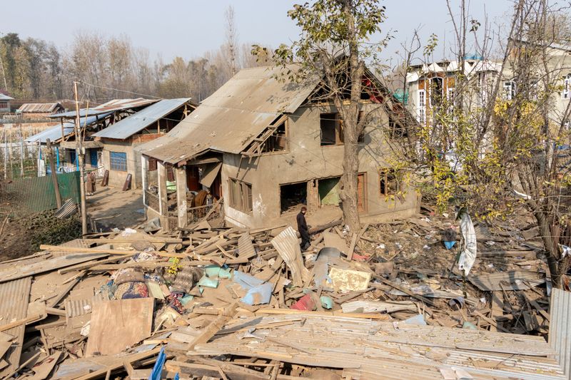 A view of a demolished house belonging to the family of Dr. Umar in Koil Pulwama, Kashmir. Photo: Umar Farooq