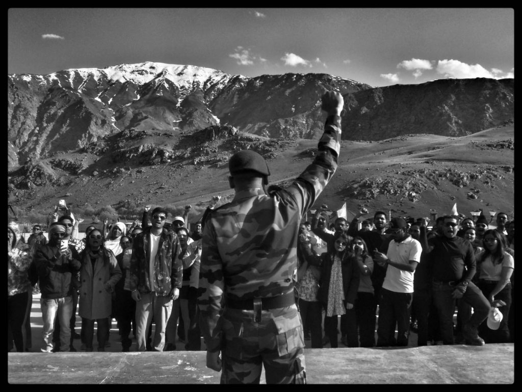 At the Kargil War memorial an armyman tells the story of Operation Vijay to visitors.