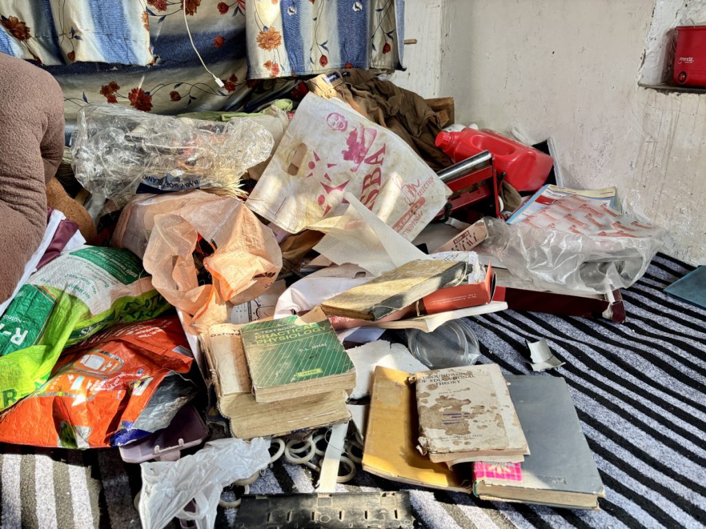 The belongings of Dr Nabi’s room after a raid by security forces. Photo: Jehangir Ali.