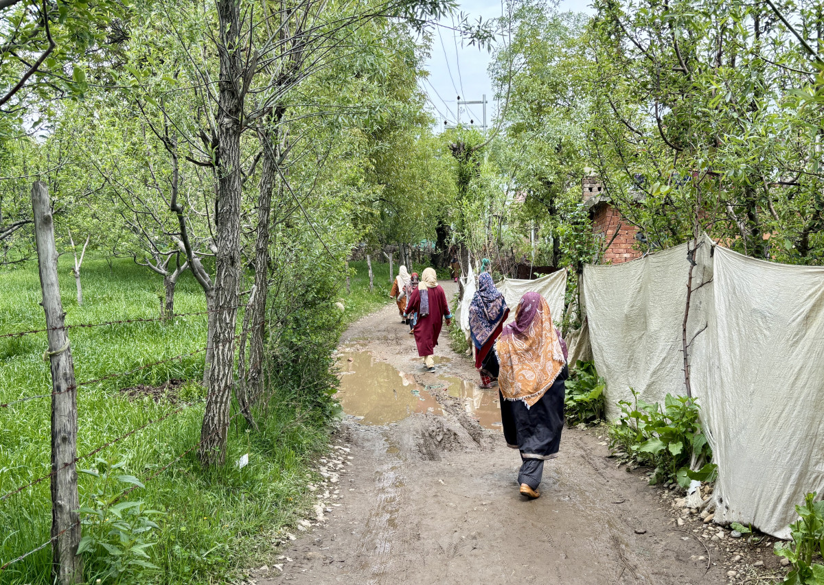 Female mourners negotiating the path to Magraypora locality in Tangmarg village of Kulgam district which is full of puddles. (Photo: Special Arrangement)