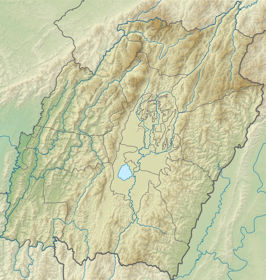 Relief map of Manipur. The Imphal valley is seen in the centre. Photo: Milenioscuro/Wikimedia Commons. CC BY-SA 3.0.