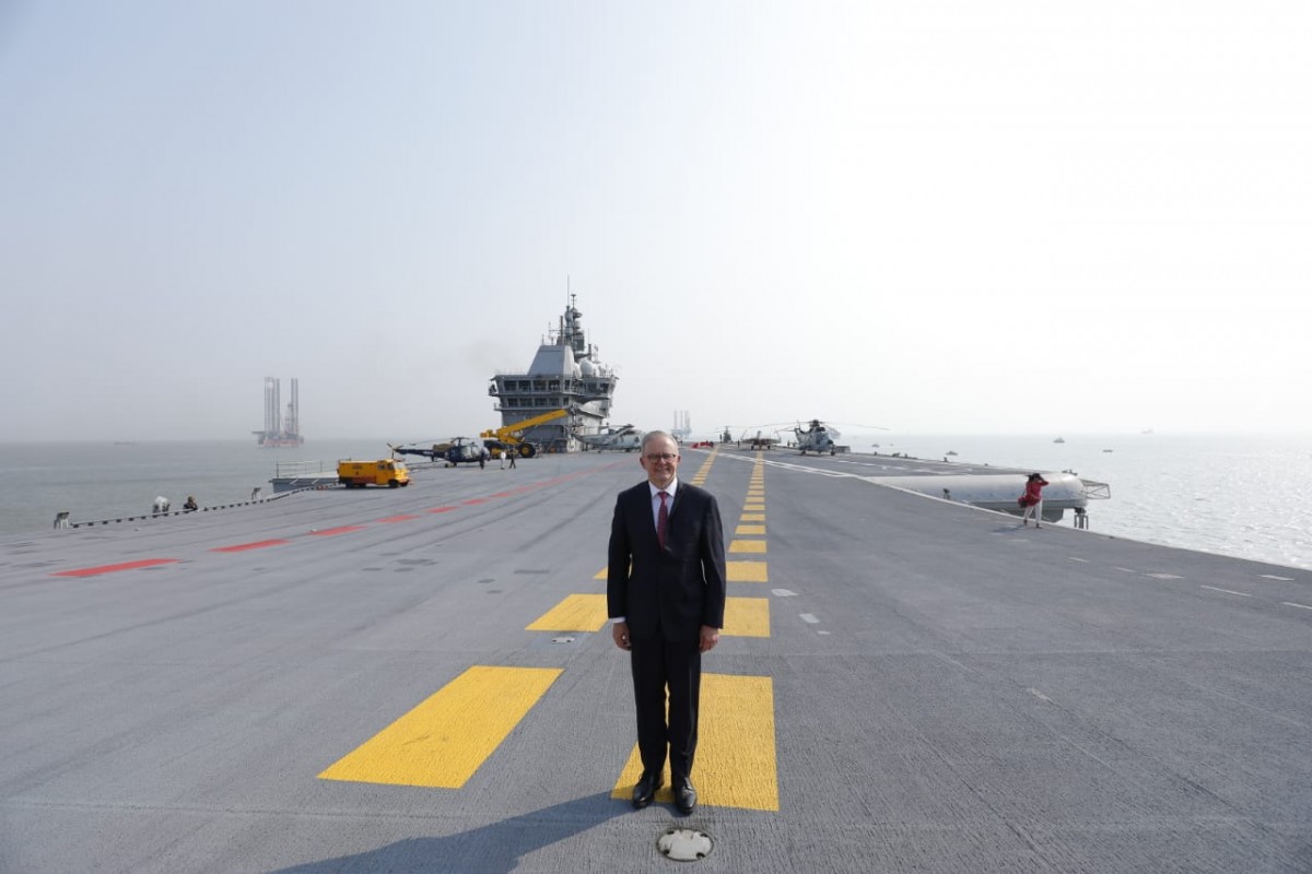 Prime Minister of Australia Anthony Albanese on INS Vikrant. Photo: Twitter/@indiannavy