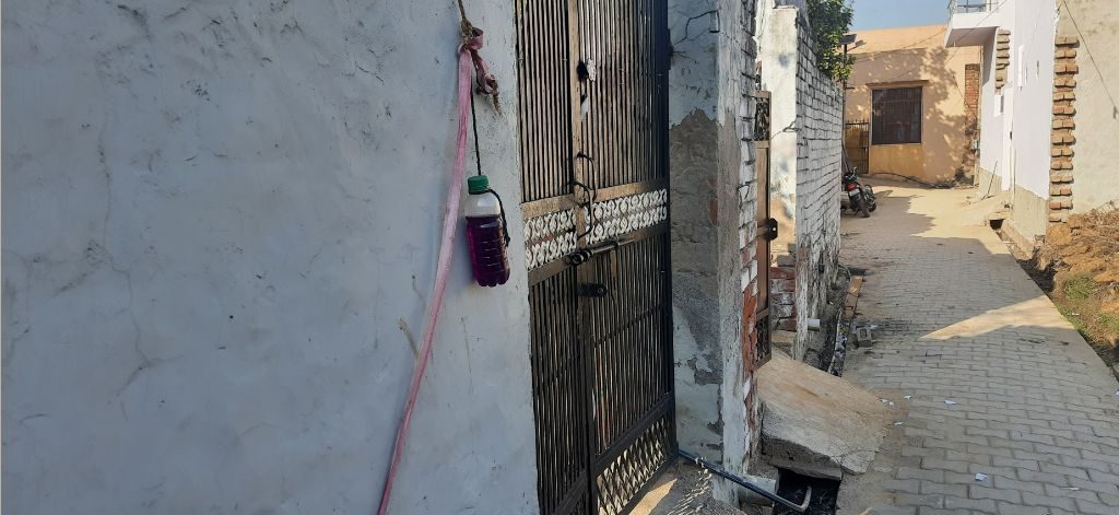 A bottle of indigo hanging outside the house to scare away dogs. Photo: Ashutosh Bhardwaj/The Wire Hindi.