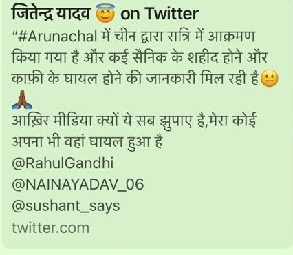 Though reporters from at least one national daily had contacted the defence ministry on Sunday itself about the clash only to be issued a flat denial, the first public news of this fracas was tweeted by a trainee police officer in Uttar Pradesh from Jhansi at 1.19 pm on December 12. He tagged, amongst others, Congress leader Rahul Gandhi, and said that a clash had taken place between Indian and Chinese soldiers, following which there were reports of several soldiers having been killed and injured. The former claim, however, has since been officially denied.