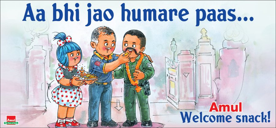 The dairy giant Amul, known for its catchy adverts on topical social trends, made a video that went viral celebrating the fighter pilot's moustache. Several hair cutting saloons across India offered free haircuts and moustache styling to resemble Abhinandan’s. At the time the BBC news website declared that the pilots moustache had become synonymous with ‘courage and patriotism’ with scores of Indians wanting to emulate Abhinandan’s facial handlebars.