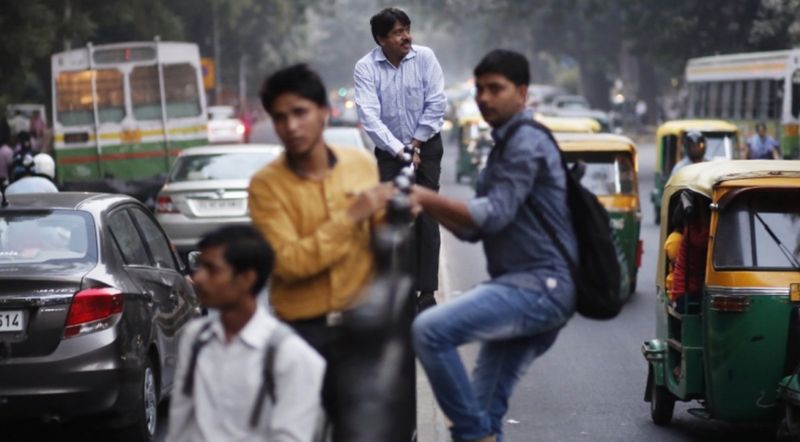 Motorcycle on a pavement , Mathura Road. Credit: Biswarup Ganguly/ Creative Commons