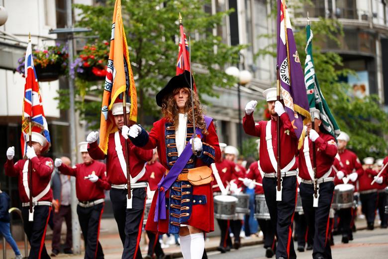 Band members take part in unionist Twelfth celebrations in Belfast, Northern Ireland, July 12, 2021. REUTERS/Jason Cairnduff
