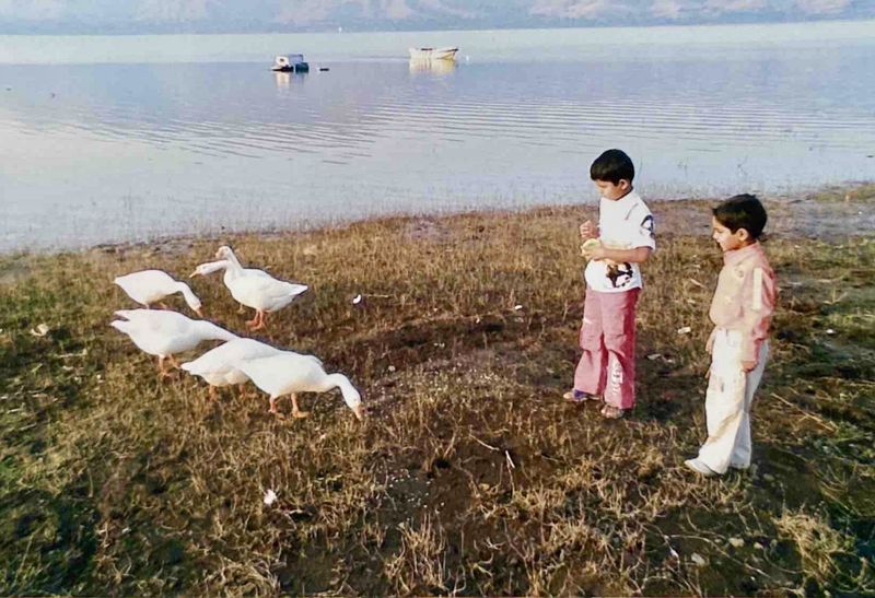 Sometimes we’d take our small blue camera along – the kind that used film, clicked loudly, and required great patience. There is one photograph from those evenings that remains framed on our shelf even now. I am crouched, with a hand outstretched, rice in my palm; my brother, smaller and braver, is laughing as a duck pecks near his foot. Behind us, the water stretches grey-blue and calm. We are not posing. We are only being.