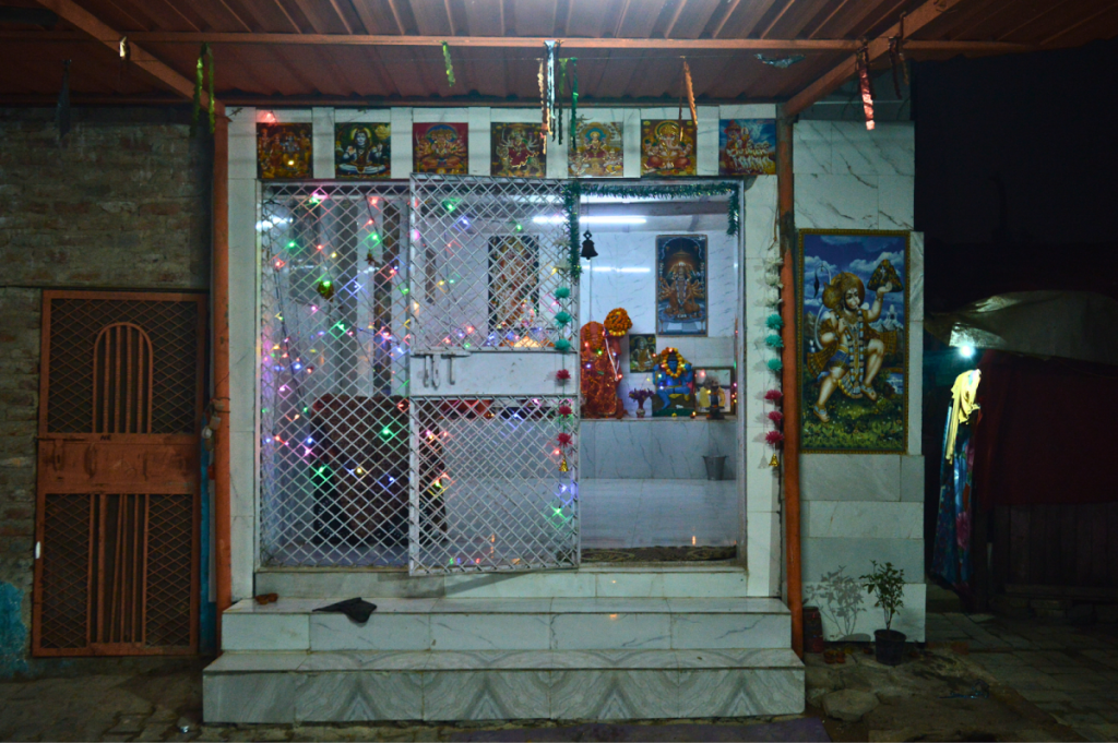 A small temple glows in the refugees’ area. Photo: Aditya Sharma.