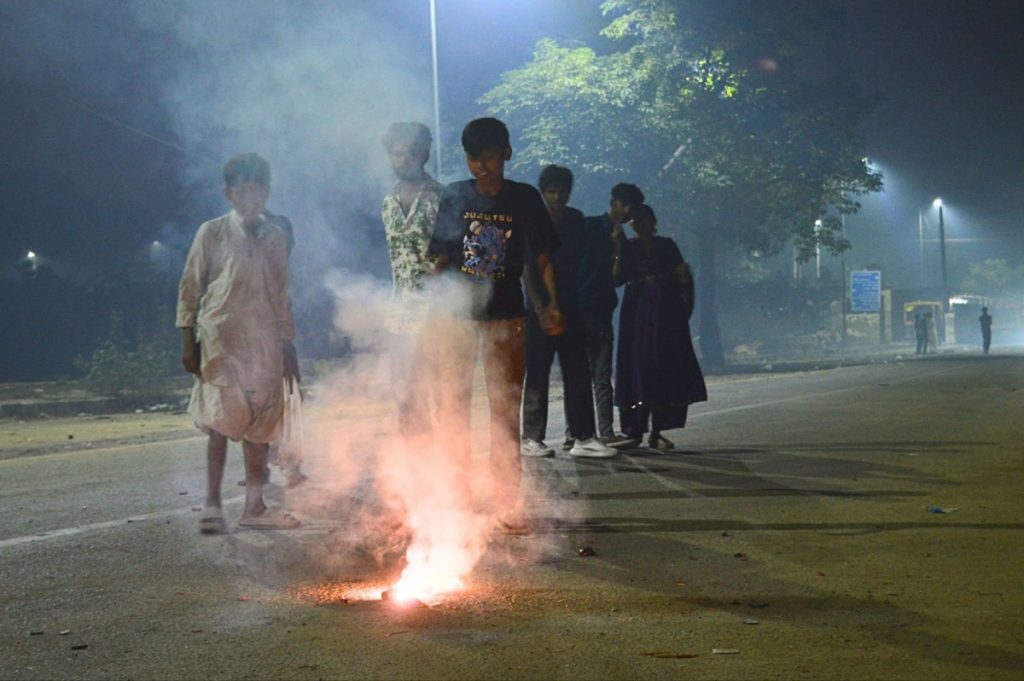 Children burst crackers on Delhi's streets. Photo: Aditya Sharma.
