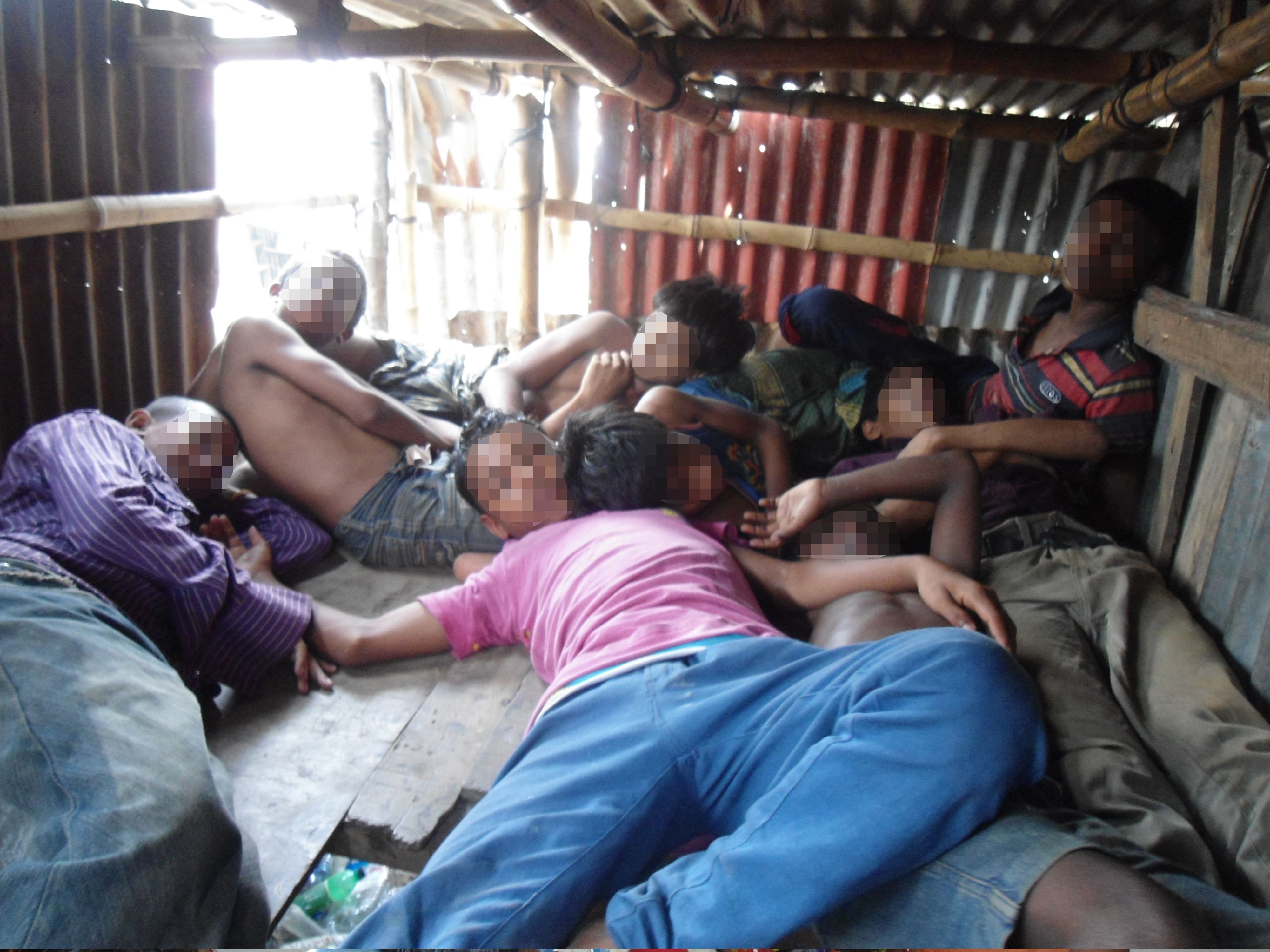 Glue-addicted children at the Mohammadpur centre of DAM. Credit: Faisal Mahmud