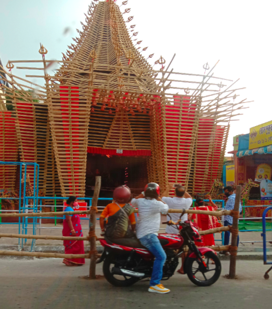 A 'no entry' board in front of a community puja on north Kolkata's B.T. Road. Photo: Soumashree Sarkar/The Wire