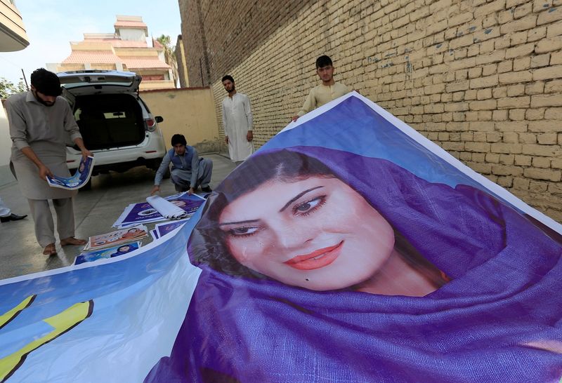 Female Afghan parliamentary election candidate, Dewa Niazai, talks with her supporters during an election campaign in Jalalabad, Afghanistan October 5, 2018. REUTERS/Parwiz