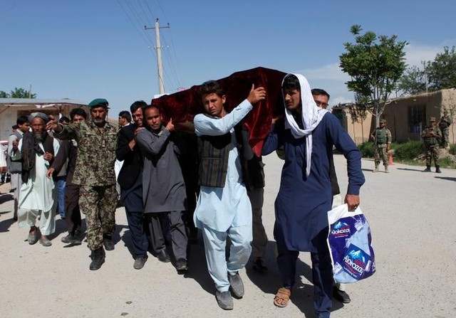 Relatives carry the coffin of one of the victims a day after an attack on an army headquarters in Mazar-i-Sharif, northern Afghanistan April 22, 2017. Credit: Reuters/Anil Usyan