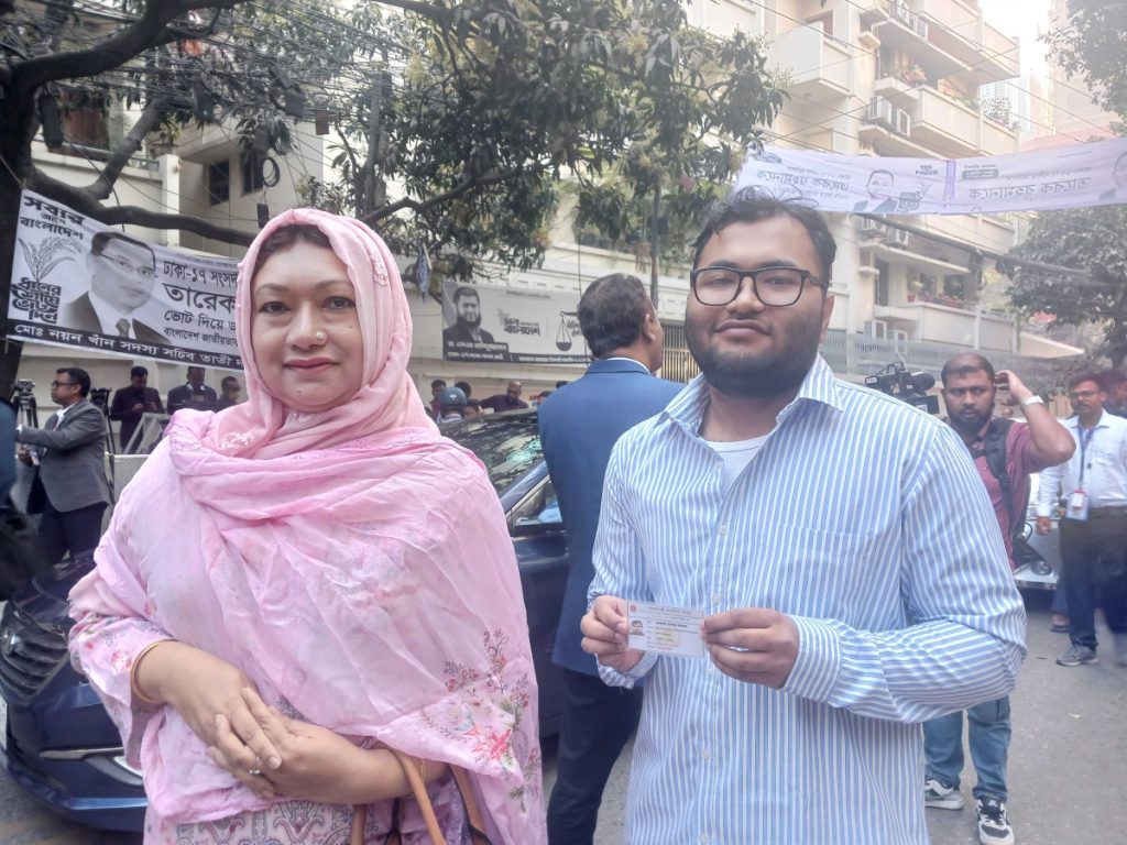 Tarique Rahman arrived at around 9:40 am with his wife, Zubaida Rahman, and their daughter Zaima, who was voting for the first time. It was the first election Tarique had voted in in 25 years. In 2001, he had voted at the Adamjee Cantonment Public School and College in Dhaka Cantonment.