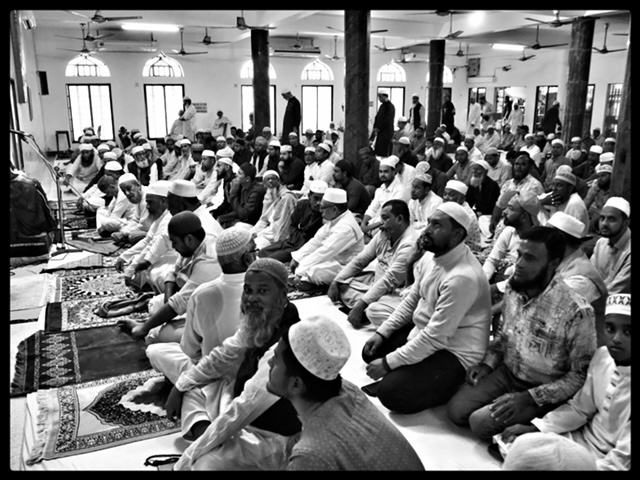 A congregation at a mosque on a Friday.